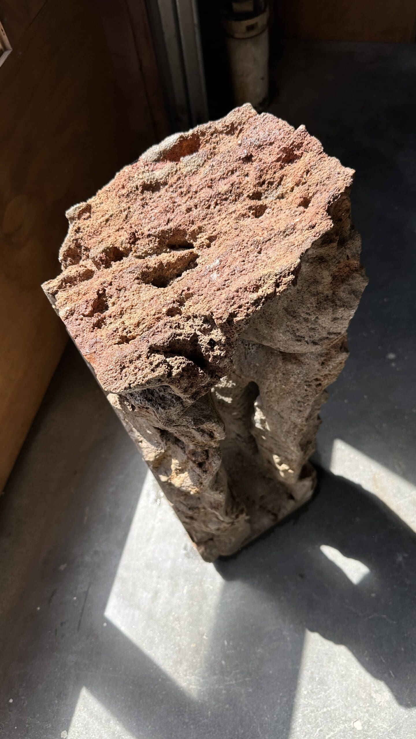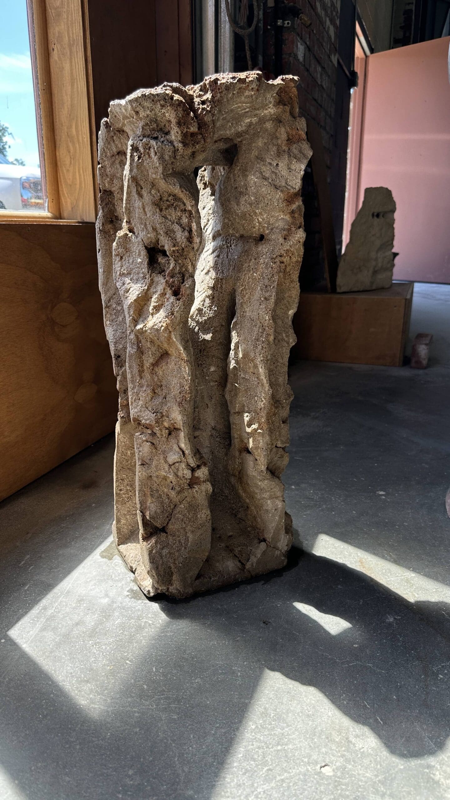 Reminiscent of high desert mesas and wind-swept cliffs, this piece—crafted from Kansas limestone—evokes the serene grandeur of sky and stone. Rugged yet refined, it adds elemental warmth and sculptural presence to any patio, garden, or architectural entryway.