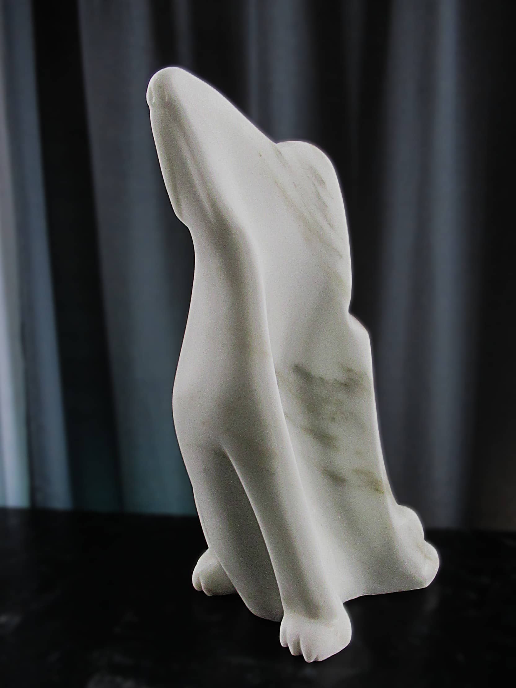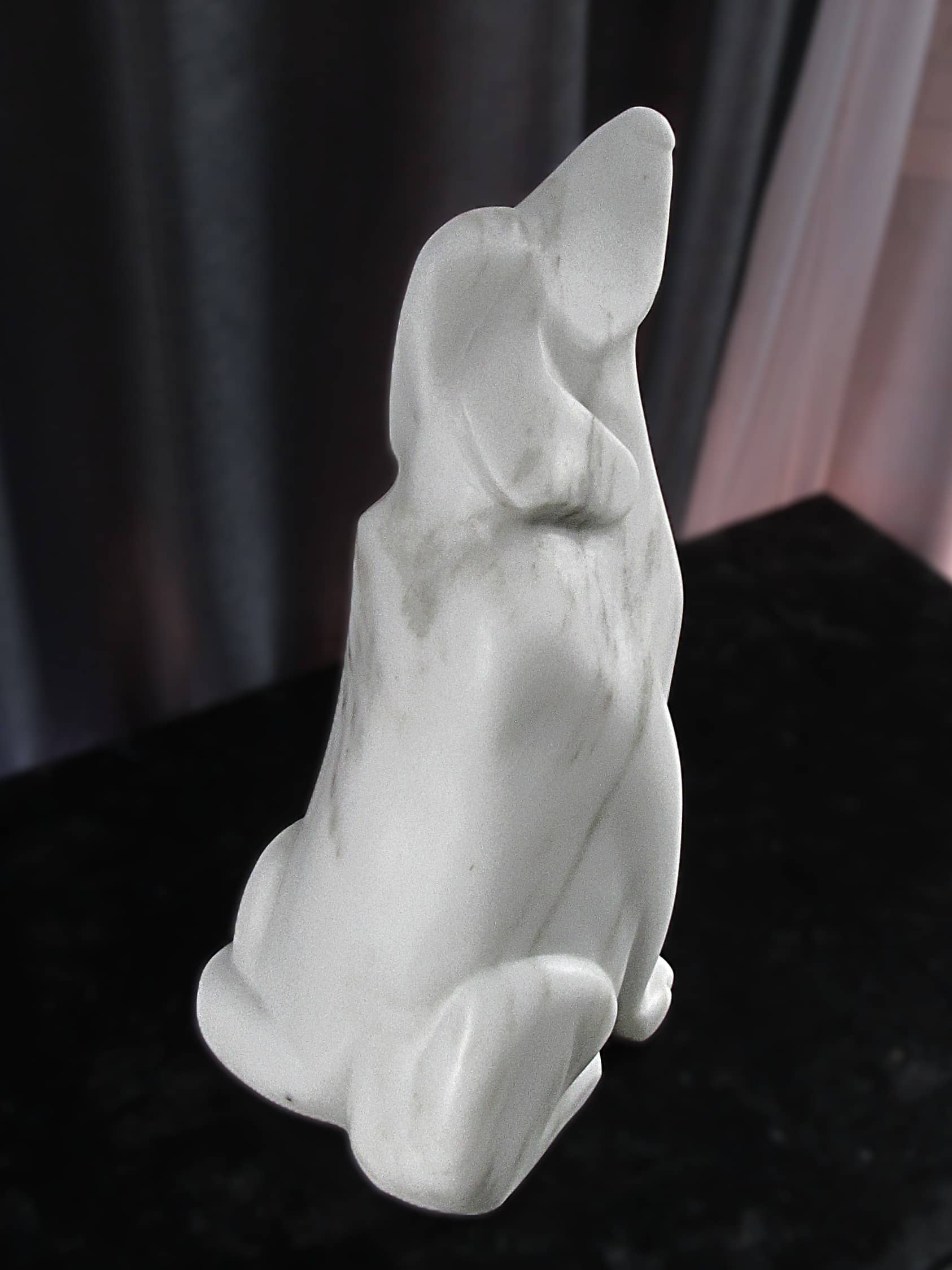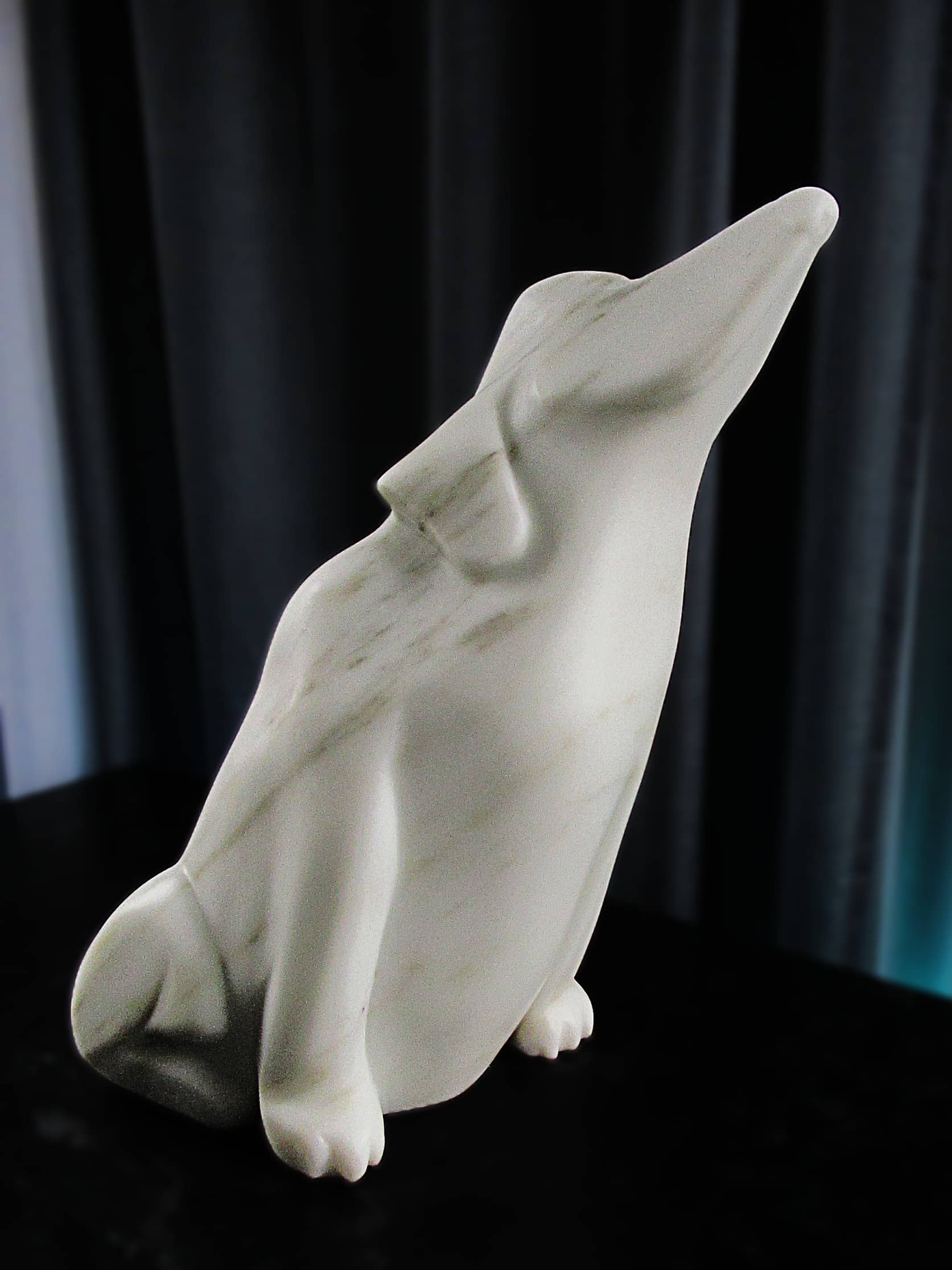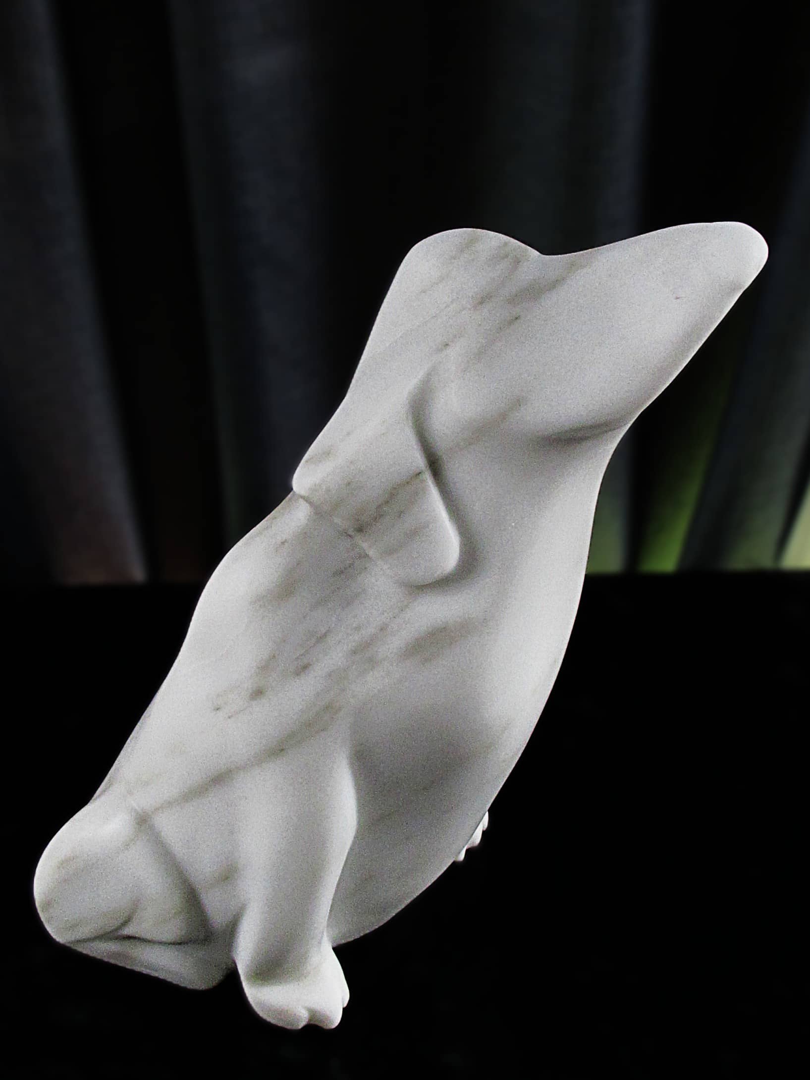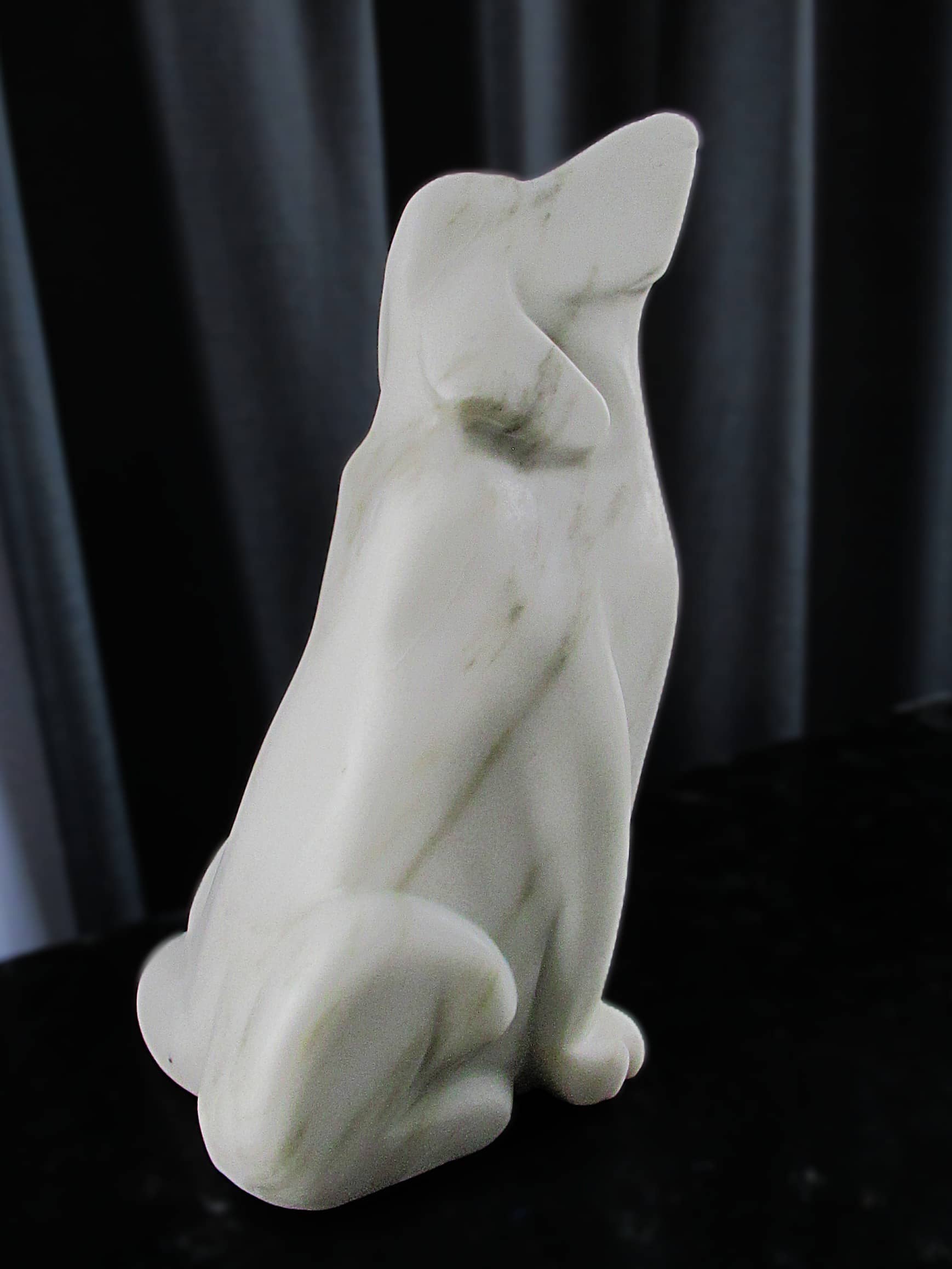 Like all works in the Collection Series, the sculpture bears my mark, signature, serial number, and identifying details carved into the underside of the base. Fido’s Still Got It is the 25th sculpture carved from the Liberty block of Colorado Yule Marble, created in The Liberty Building, home of Martin Cooney Stoneworks.