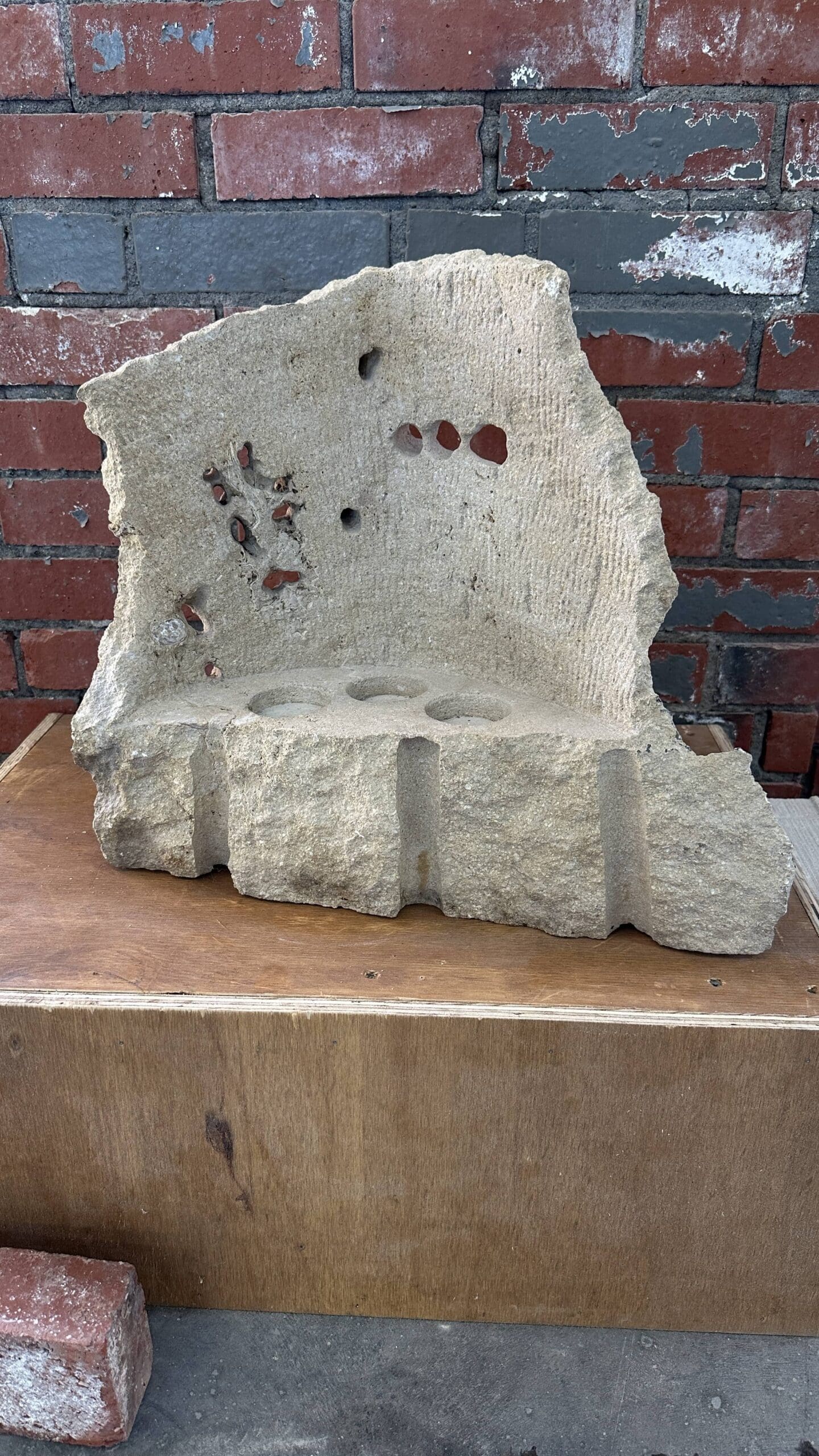Quarry Glow is a sculptural candle mount carved from Kansas limestone, designed to transform natural flame into ambient art. Its rugged shell, shaped by time and hand, cradles a candle within a recessed chamber. When lit, the flame is shielded from wind by the substantial stone walls, while a trio of boreholes behind the flame allow light to spill through and cast a glowing pattern on the wall beyond. This interplay of light and shadow brings warmth to patios, entryways, or quiet interiors—offering not just illumination, but a grounded sense of calm and permanence.